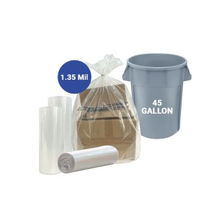 LD Trash Bags, LLDPE Plastic, Clear, 45 Brute, 37in x 50in x 1.35mil, 10 pcs/roll
