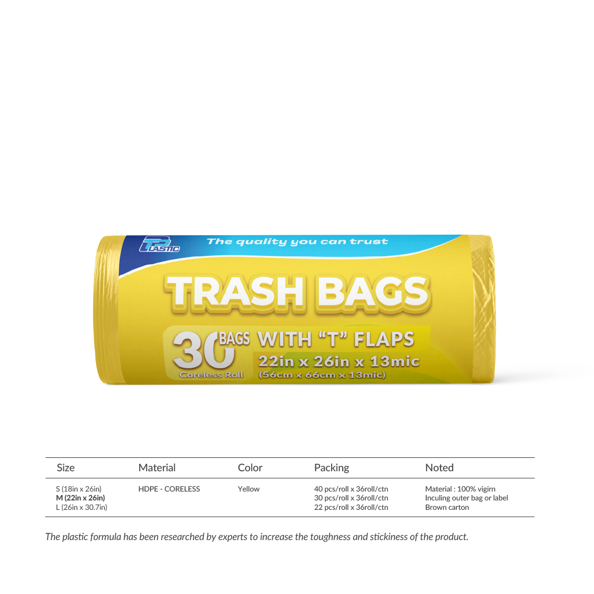 Trash bags are available in various sizes to suit different trash cans and waste volumes. Standard sizes range from small bags suitable for bathroom or office bins to large bags designed for outdoor bins or industrial use. Custom sizes are also available to meet specific requirements.